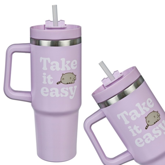 Praktyczny bidon z motywem Pusheen to świetny wybór do szkoły, pracy lub na wycieczkę. Urocza grafika z popularnym kotkiem sprawia, że kubek wyróżnia się i świetnie sprawdzi się jako codzienny towarzysz napojów.