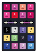 W zestawie: 8 błyszczyków, 12 cieni do powiek i 2 aplikatory.
