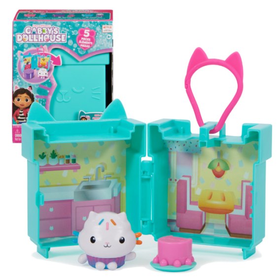 W super uroczej łazience w domku dla lalek znajduje się MerCat, przyjaciel Gabby Cat, ten przenośny zestaw zawiera miniaturowy domek dla lalek z plastikowym klipsem do plecaka, dzięki czemu możesz go zabrać ze sobą wszędzie!