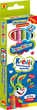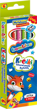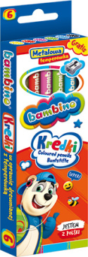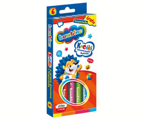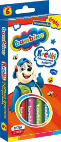 KREDKI GRUBE W DREWNIANEJ OPRAWIE BAMBINO + TEMPERÓWKA - 6 KOLORÓW
