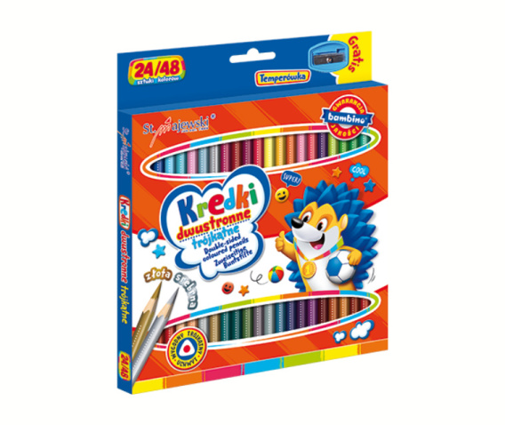 Kredki Trójkątne Dwustronne BAMBINO + Temperówka 24/48 Kolorów MAJEWSKI 004964