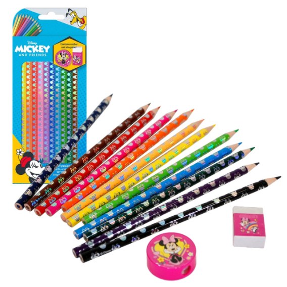 Kredki ołówkowe MINNIE MOUSE 12szt. Gumka Temperówka KIDS WD21724
