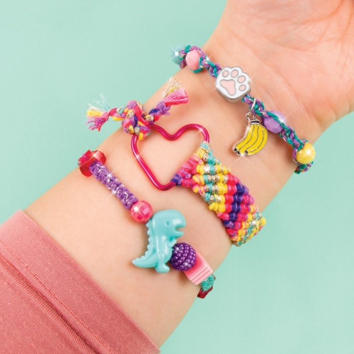 Dowiedz się, jak stworzyć pięć wyjątkowych, plecionych bransoletek przyjaźni, korzystając z niezwykłego zestawu do robienia biżuterii, w którym znajdziesz aż 50 elementów i specjalny warsztacik PlayTray.