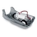 Górna część robota sumo jest przezroczysta, dzięki czemu można obserwować pracę wewnętrznych przekładni i zapoznać dzieci z mechanizmami umożliwiającymi ruchy robota.