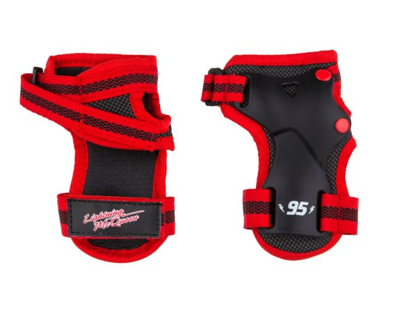 Ochraniacze na nadgarstki zapinane są na paski z rzepami.