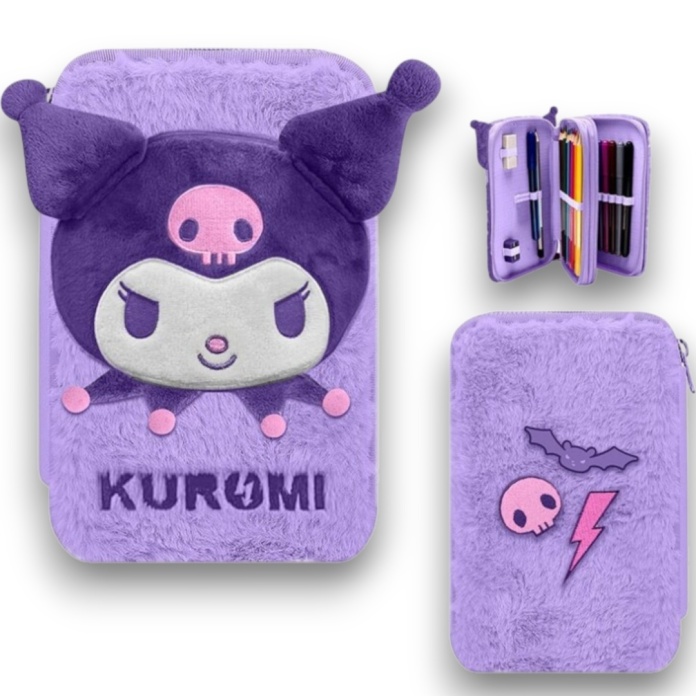 PIÓRNIK PLUSZOWY KUROMI z wyposażeniem dwukomorowy szkolny