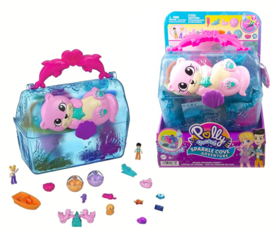 Zestaw Polly Pocket Wyspa Skarbów ma uroczą obudowę z uroczymi detalami wydry.