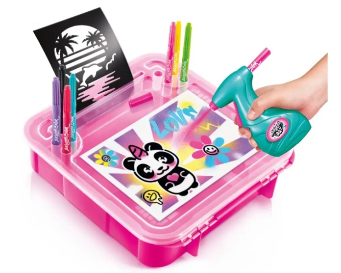 W poręcznej, lekkiej walizeczce znajdziesz wszystko, czego potrzebujesz, aby tworzyć w domu, w szkole lub w podróży: papier, szablony, pisaki i aerograf.
