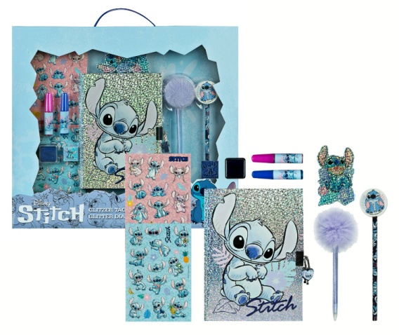 Zestaw Brokatowy Pamiętnik z ulubionymi postaciami z bajki STITCH.