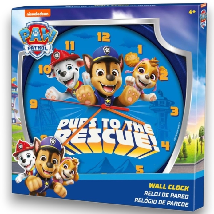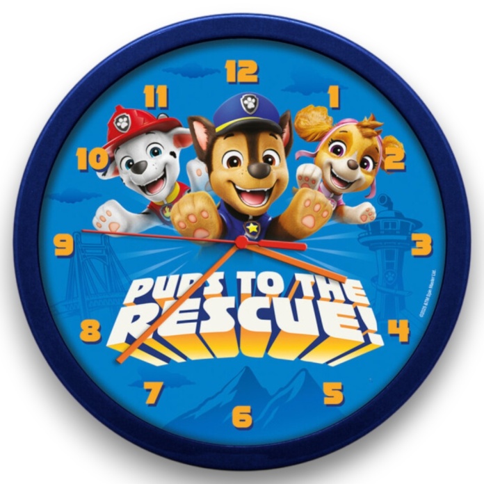 Zegar posiada tarczę z motywem Psi Patrol oraz mechanizm kwarcowy zasilany baterią AA (brak w zestawie). Obudowa wykonana z lekkiego tworzywa sztucznego.