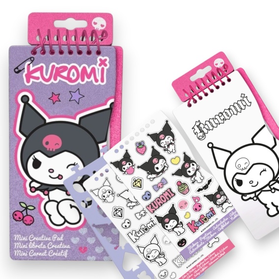 Kompaktowy zestaw kreatywny z motywem KUROMI umożliwia dziecku tworzenie i ozdabianie własnych prac przy użyciu naklejek oraz szablonów. Poręczny format sprawia, że zestaw można łatwo zabrać do plecaka lub torby i używać w domu, podróży lub podczas zajęć.
