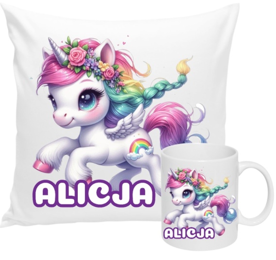 ZESTAW KUBEK I PODUSZKA JEDNOROŻEC - PREZENT Z IMIENIEM DLA DZIECI