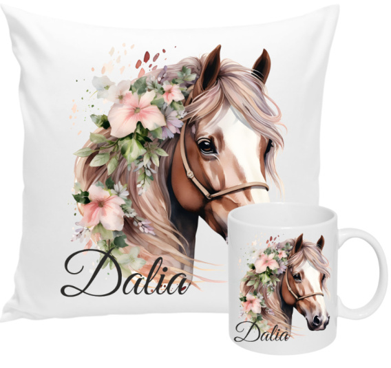 ZESTAW KUBEK I PODUSZKA KOŃ KONIE - PREZENT DLA JEŹDŹCA + IMIĘ wz4 Dalia
