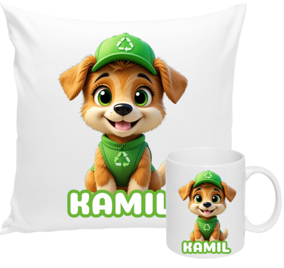 ZESTAW KUBEK I PODUSZKA PSI PATROL TRACKER - PREZENT Z IMIENIEM
