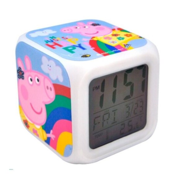 ZEGAR Z BUDZIKIEM - LED 7 KOLORÓW - ŚWINKA PEPPA