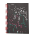 Z praktyczną spiralną oprawą i szeroką różową gumką, do której przymocowane są długopisy w siateczkowej kieszonce.